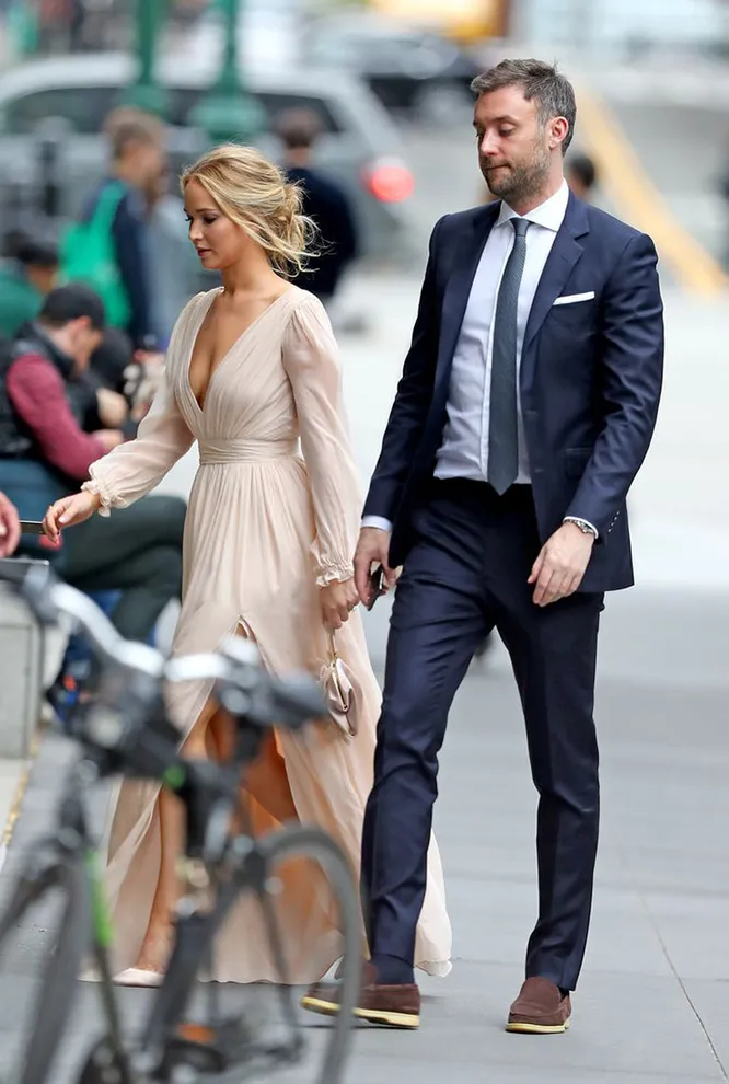 Совсем скоро Дженнифер Лоуренс выйдет замуж за своего бойфренда, нью-йоркского арт-галериста Кука Марони. Незадолго до дня Х влюбленные устроили вечеринку для друзей и родных, чтобы наконец официально отметить свою помолвку. Платье для этого праздника оскароносная актриса подобрала настолько эффектное, что в нем легко можно было бы отправиться и под венец. Выбор звезды пал на американский бренд L. Wells. И случилось это не впервые: знаменитость ранее уже появлялась в нарядах марки на красных дорожках.