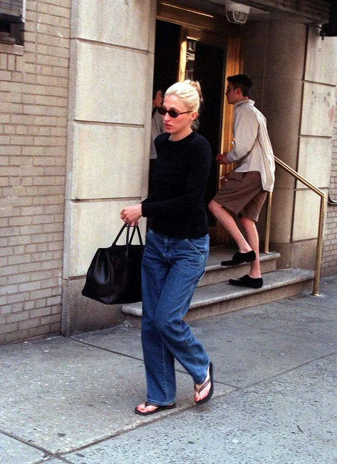 Для Кэролин ободки были не просто способом убрать волосы, а настоящим элементом образа. Простой, широкий и базового тона — именно такой аксессуар подчеркивал сдержанный шик ее натуры. Она носила его и с хвостом, и с пучком, и с распущенными волосами. Добавьте такой к любому наряду и вы мгновенно получите тот самый вайб конца 90-х.