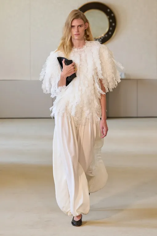 Мы с нетерпением ждали сухую солнечную погоду, потому что сейчас можно без страха выйти на улицу в белых брюках или джинсах. Чтобы отметить начало долгожданной весны, предлагаем одеться в белый с головы до ног. Почему именно белый? Он не только цвет года по версии Pantone, но и лучше всего передает ощущение нового сезона. Исключение можно сделать только для обуви и аксессуаров. А за ориентир берем свежие образы из коллекций весна-лето 2026 — и переводим их на язык повседневного гардероба.