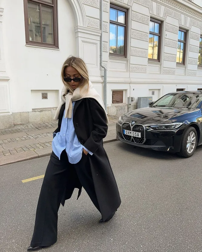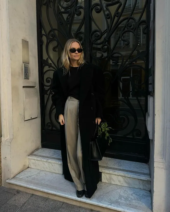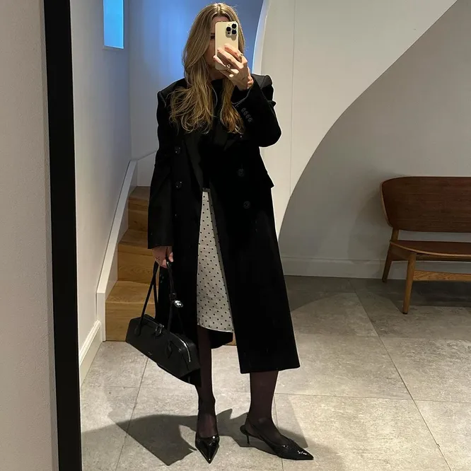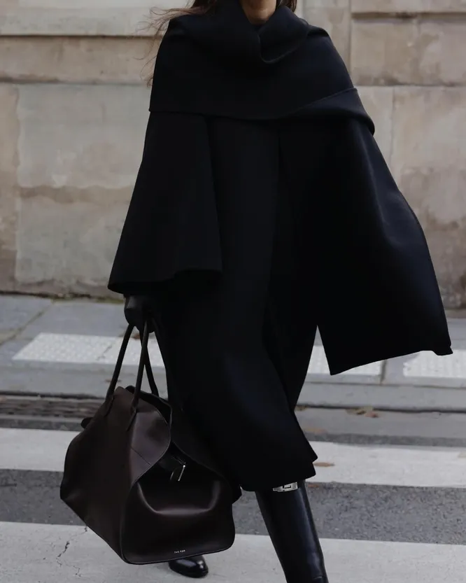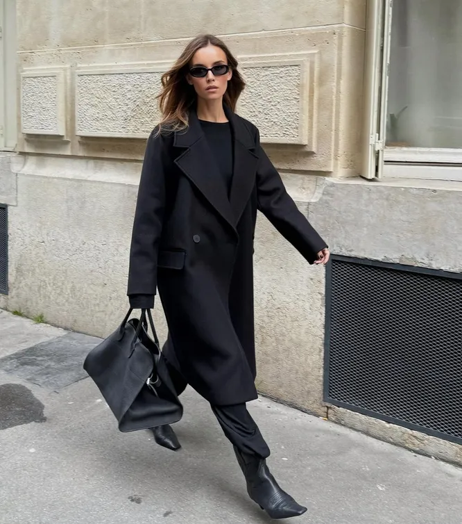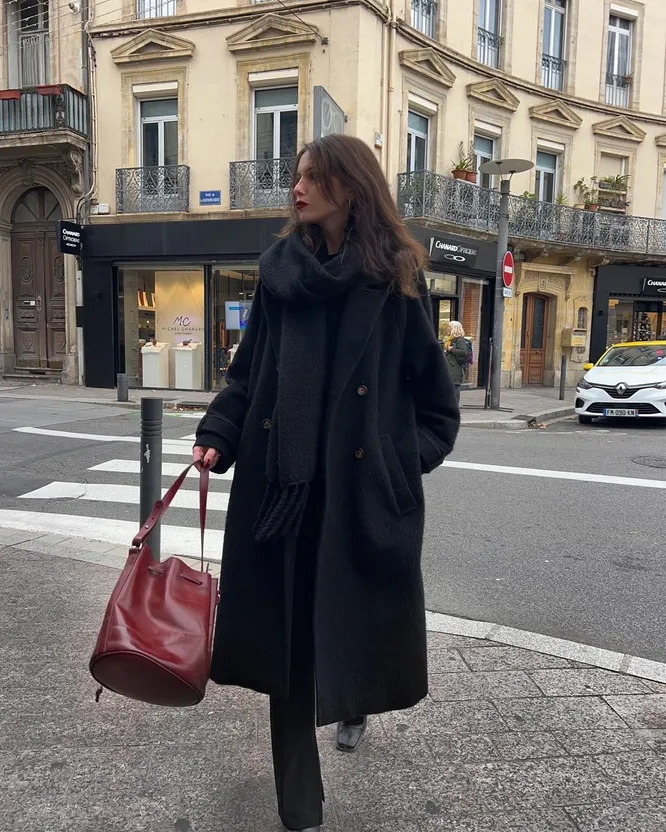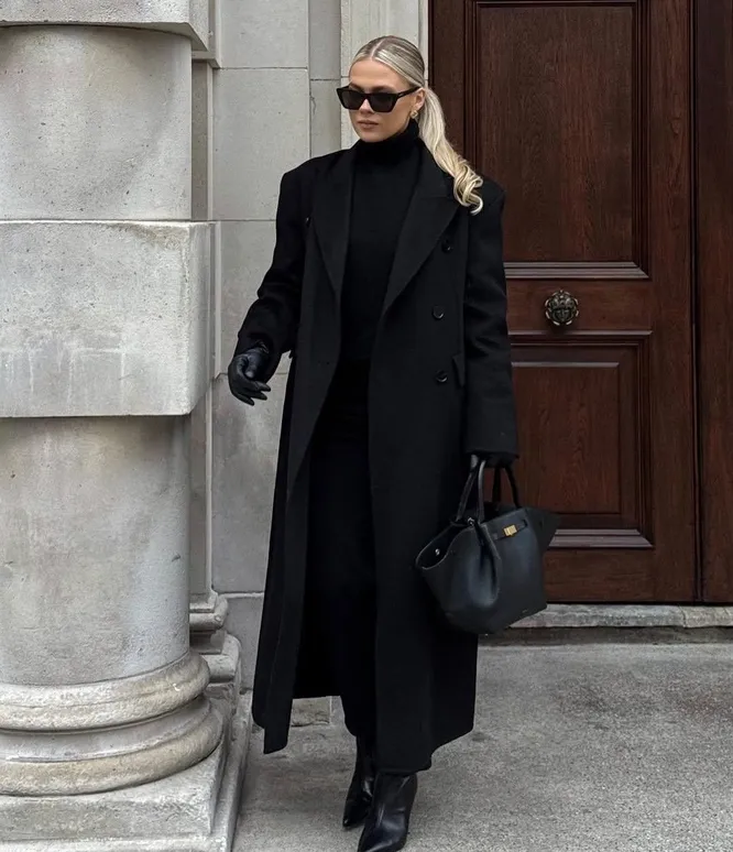 Помните, чтобы черное пальто выглядело «дорого», важно уделить внимание фасону и качеству. Прежде всего, выбирайте модель из натуральных материалов — кашемира или шерсти. Длина также имеет значение: классический крой чуть ниже колена или в пол также добавит элегантности образу. Аксессуары играют решающую роль. Дополните пальто широким кожаным поясом, чтобы подчеркнуть талию и создать женственный силуэт. Выберите акцентные сапоги на высоком каблуке или ботильоны из замши — они добавят образу завершенности. И не забывайте про головные уборы: актуальная шляпа-таблетка или стильный берет, а также кожаные перчатки придадут вашему внешнему виду утонченность. Финальный штрих — сумка.