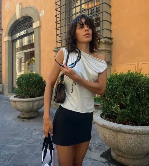 «Меньше значит больше» — главное правило в стилизации мини. При выборе и низа, и верха ориентируйтесь на простой крой, отсутствие лишних деталей и декора. Это же касается и цветовой гаммы: выбирайте классику. Конечно, черный, белый, молочный, бежевый или пастельные оттенки. А вот ярких цветов лучше воздержаться — зачастую такие мини могут дешево. Украшения и аксессуары к образу также выбирайте спокойные. Если сомнения все же есть, подготовили подборку самых удачных вариантов.