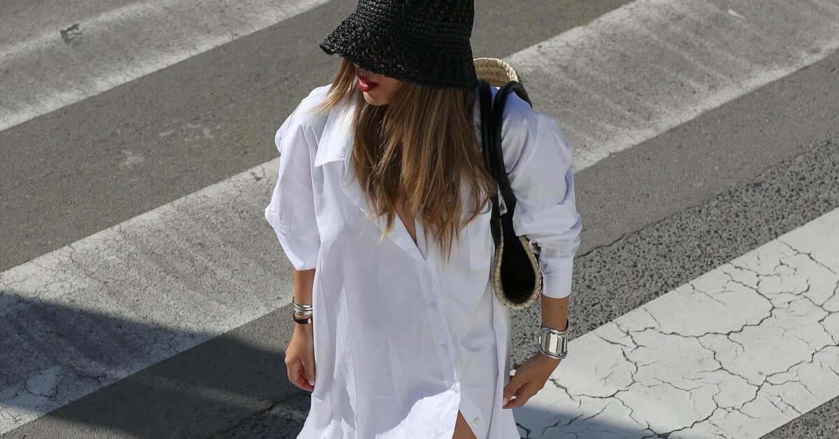 Это комбо окажется одинаково практичным и на отдыхе, и в жарком мегаполисе. Платье-рубашку выбирайте из льна или тонкого хлопка и дополняйте кожаными шлепанцами. Последние давно перестали быть предметом исключительно пляжного гардероба: теперь модницы смело носят их в городе с самыми разными вещами. То же самое можно сказать и про плетеную сумку, которая в этом году оказалась в числе фаворитов дизайнеров. Такая легко вместит в себя все необходимое, а в качестве приятного бонуса — добавить аутфиту французского шика. И, конечно, в солнечный день не стоит покидать дом без солнцезащитных очков: они не только станут эффектным акцентом в образе, но и защитят глаза от вредного воздействия ультрафиолета.