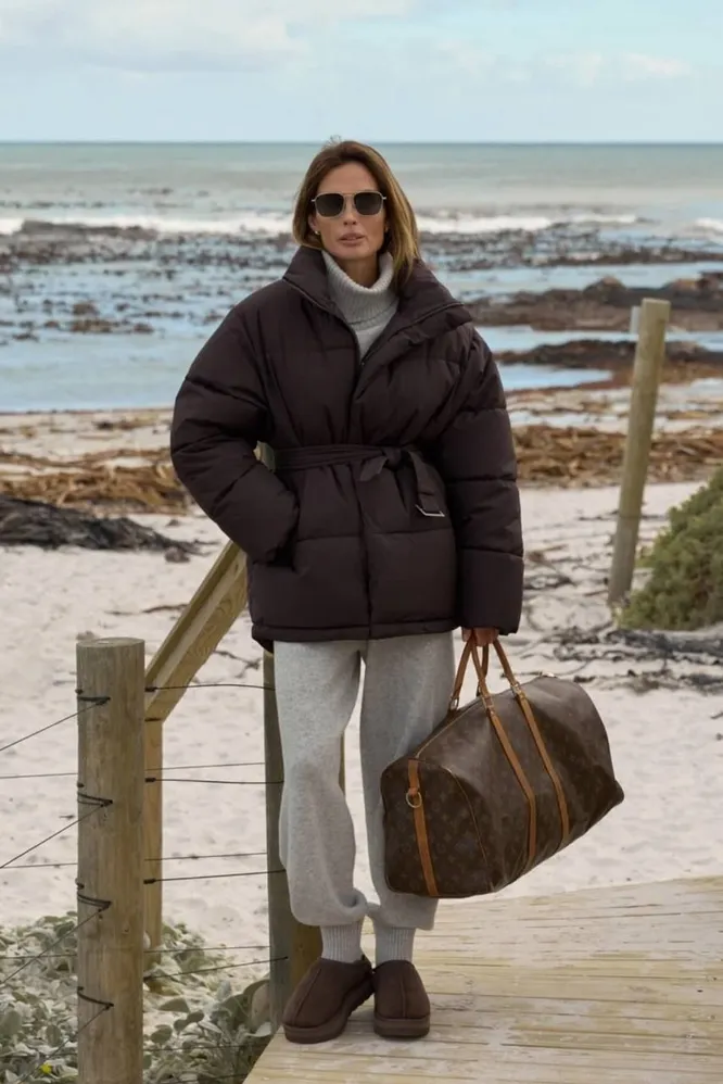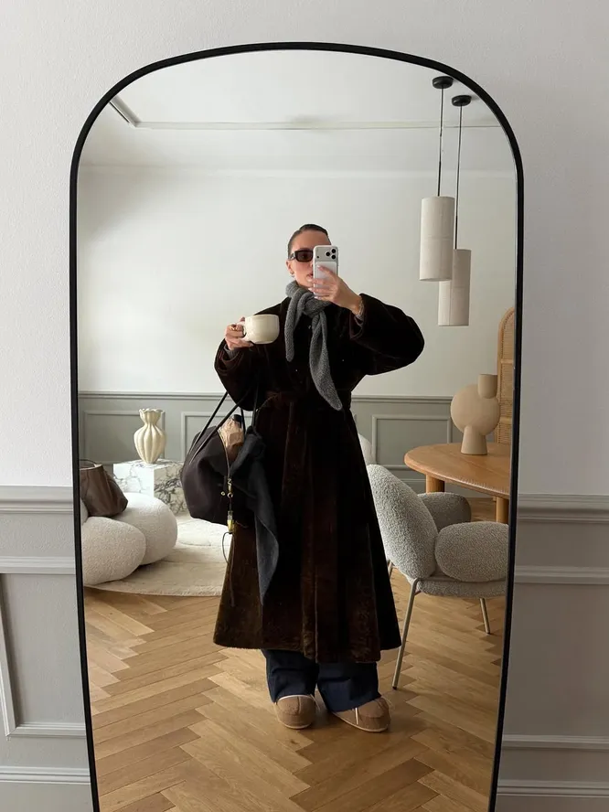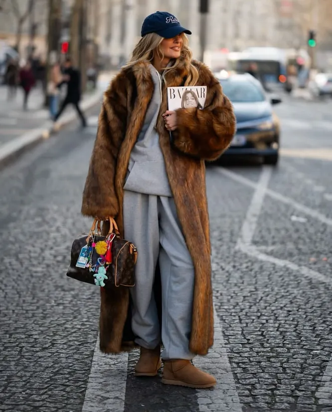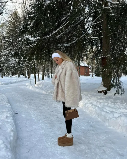 Чтобы создать стильный и практичный образ, выбирайте модели в нейтральных оттенках, таких как бежевый, шоколадный или серый. В сочетании с правильными элементами они легко превращаются из простой уютной обуви в основу стильного аутфита. Если раньше они сочетались только со спортивными костюмами, то теперь вы можете смело носить их с денимом и жакетами в городском стиле. Кстати, не забудьте и об опциях с анималистичным принтом. Такие сегодня особенно в тренде. Конечно, пристальное внимание можно уделить моделям с леопардовым рисунком. Подобные модели отлично подойдут к любому образу, добавив в него яркий акцент. А после того, как вы выбрали идеальные по цвету угги, нужнь подумать о том, с чем их стилизовать. Начнем с повседневного ансамбля: эта опция отлично дополняет прямые джинсы или свободные брюки на высокой талии. Сверху добавьте базовый свитер крупной вязки или кардиган. В качестве верхней одежды отлично подойдет зимнее шерстяное пальто, пуховик и даже шуба или дубленка. Для завершения лука подберите небольшую сумку-кроссбоди и, конечно, шарф, шапку и перчатки в особенно холодные дни. Угги также можно стилизовать с платьями. Платье-свитер составит с ними прекрасный тандем: расслабленный, но элегантный. Плотные черные колготки, укороченная дубленка или пуховик и крупные аксессуары завершат лук, сохранив баланс между женственностью и удобством.