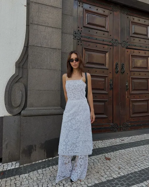 Платье с брюками — пусть и странное, но уже давно не удивительное явление на модной арене. Еще несколько сезонов назад на подиуме мы наблюдали сочетание струящихся туник с брюками. Но в реальности это комбо прижилось с трудом. Даже среди селебрити и героинь стритстайла мало кто решается на такой аутфит. Но тем не менее дуэт платья с брюками вернулся вновь и выглядит крайне актуально. Чтобы образ точно получился, необходимо учитывать некоторые нюансы. Самый беспроигрышный вариант — приобрести комплект. Например, кружевное приталенное платье на тонких бретелях и брюки. Благодаря расширяющемуся книзу фасону, вы получите гармоничный женственный силуэт. А если вы боитесь, что у вас не получится правильно подобрать цветовую комбинацию, просто выбирайте классические сочетания. Тут отличным решением станет total-white лук.