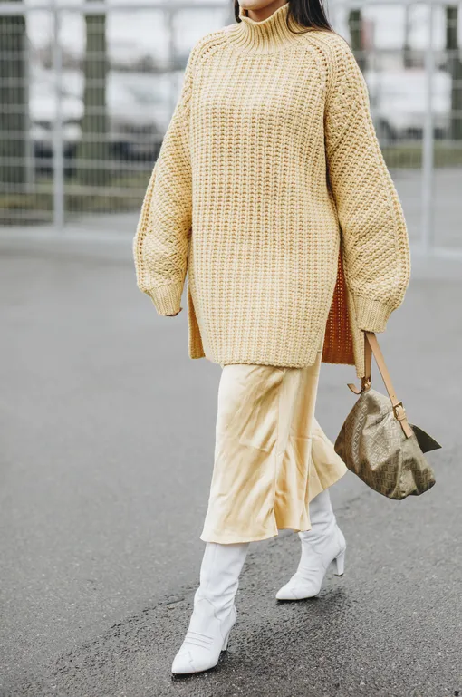 Юбка длины миди или макси из струящегося шелка или атласа тоже способна преобразить даже такую простую вещь, как трикотажный свитер. Дополните это комбо сапогами на высоких каблуках, сумкой простой формы и броскими украшениями — и «дорогой» образ готов.