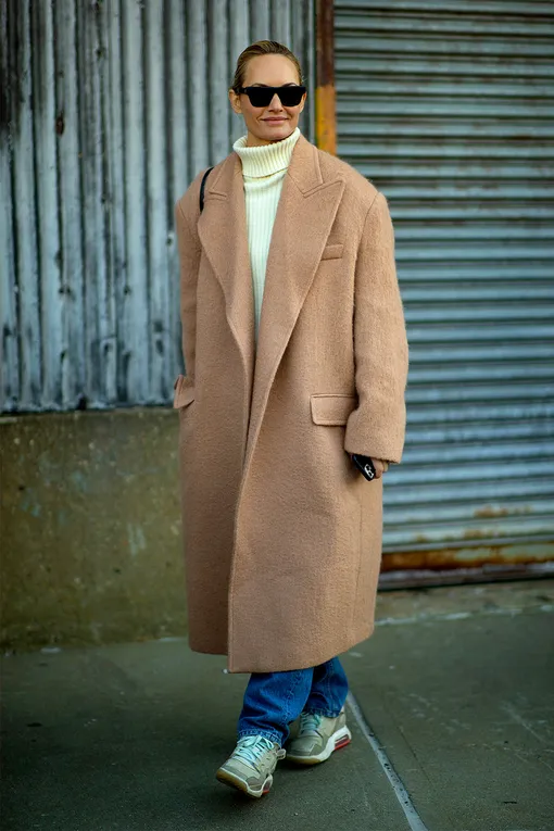 Ничто не ново под луной: пора доставать из шкафа объемное пальто-халат или обзаводиться новым. В тренде — модели бежевых или серых оттенков с широкими лацканами. Рассчитывайте размер так, чтобы под пальто поместилось еще минимум 2-3 слоя одежды, включая теплую стеганую жилетку. А как носить классическую модель и не выглядеть скучно, мы подробно рассказываем здесь.