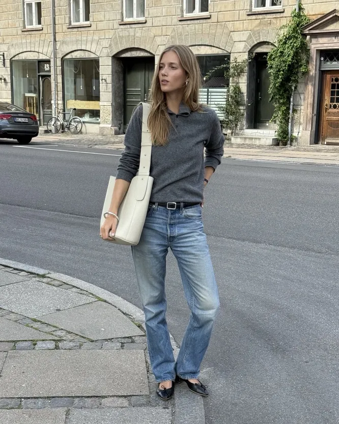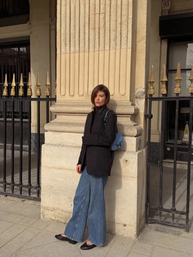 Носить балетки внутри базовых комплектов невероятно просто — мы полюбили их именно за отсутствие необходимости дополнительной стилизации. У вас есть два пути, по которым можно пойти. Первый — сохранить женственное и кокетливое настроение образа, дополнив пару платьем А-силуэта или женственной блузкой с рюшами и юбкой-годе. Второй вариант — сыграть на контрастах, и подобрать максимально неожиданные вещи в маскулинном стиле. Среди них — пиджак с объемными подплечниками и брюки палаццо широкого кроя. Обязательно со стрелками.