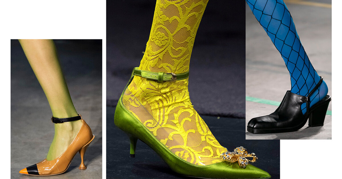 Этой осенью чем ярче и затейливее узор на колготках, тем лучше. Почти на каждом втором осенне-зимнем показе можно было заметить разноцветные варианты с принтами, стразами, вышивками. Монохромные тоже не стали исключением, но обязательно цвета «вырвиглаз», такие как на шоу Burberry, Dries Van Noten и Rodarte. Высший пилотаж — подобрать обувь в тон. Versace и Gucci «реинкарнировали» ажурные кружева, Kate Spade — люрекс, а Fendi продолжают эксплуатировать логотип. Самый скромный способ приобщиться к тренду — черные колготки, деликатно обсыпанные стразами, как у Paco Rabanne, — идеальная пара для маленького черного платья.