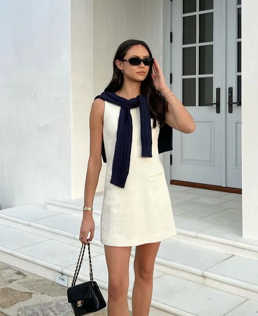Да, Chanel сделала твид вечной классикой, но летом 2025 этот материал — не лучшее решение. Во-первых, он тяжеловат визуально, во-вторых — просто не отвечает простым потребностям для жары. Даже облегченные твидовые варианты на фоне актуальных льна и хлопка выглядят тяжеловесно и неуместно. Плюс весь лук с таким платьем будет слишком в духе old money. А эра «тихой роскоши» давно прошла.