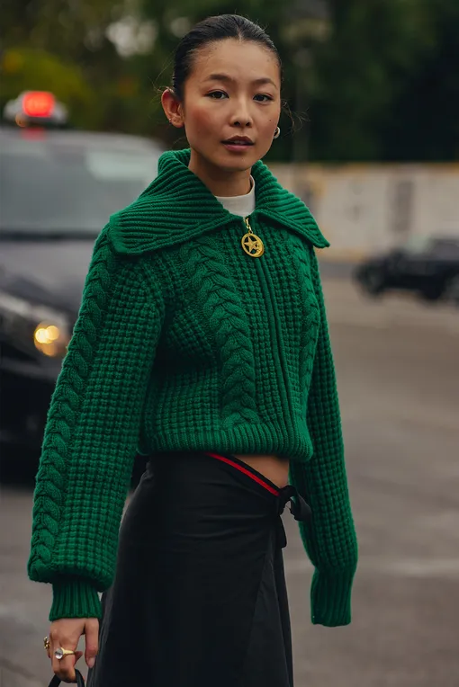 В этом сезоне выбирайте модели с воротником-поло. Этот неожиданный камбэк из 1990-х пришел на смену огромным свитерам крупной вязки. Этот универсальный предмет гардероба станет стильной альтернативой и кардиганам, и спортивным толстовкам. В офис носите свитер-поло с парой широких классических брюк (обязательно на высокой посадке), объемным жакетом «мужского» кроя и ботильонами на каблуке, а вечером сочетайте с нарядной юбкой-миди и любимыми туфлями. Последнее сочетание будет смотреться особенно гармонично, благодаря контрасту двух непохожих вещей.