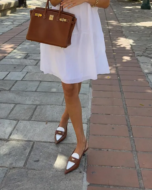Если же нужна более строгая и закрытая обувь, но все еще летняя по настроению, то выбор вероятнее всего падет на слингбэки. Открытая пятка, поддерживаемая ремешком, не только обеспечит комфорт даже в жару, но и добавит силуэту легкости и изящества. К тому же это важный тренд сезона, который нет никакого смысла игнорировать. И куда более свежая и оригинальная альтернатива лодочкам.