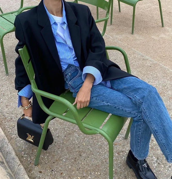 Прямые джинсы — классика на все времена. В целом, с ними можно найти множество удачных сочетаний, и комбо с кроссовками одно из них. Кроссовки могут быть самыми базовыми (как Adidas Gazele) или на массивной подошве, как у супермоделей 90-х — с прямыми джинсами отлично сочетаются любые.