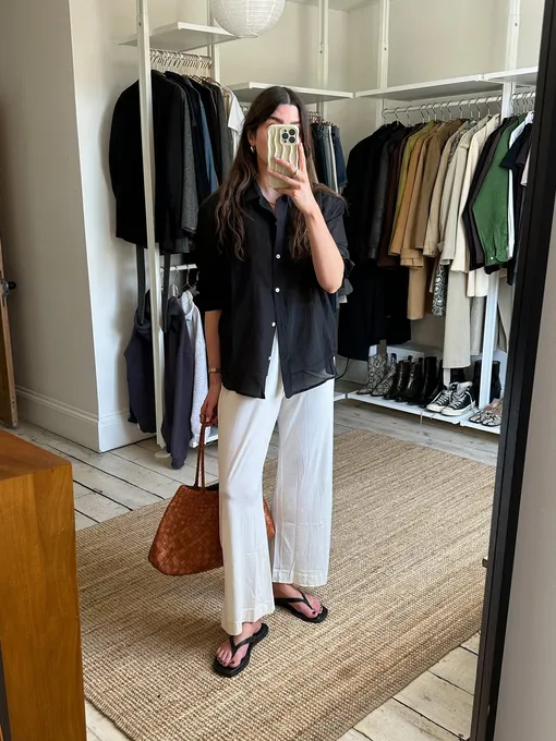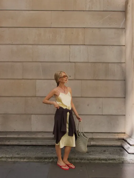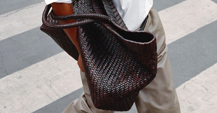 Соломенные сумки в духе Джейн Биркин уже давно стала символом лета. Легкая, романтичная, немного наивная — она придает любому аутфиту нотку ретро-шика и расслабленного французского настроения. Даже самый строгий комплект из жакета и брюк с ней начинает звучать иначе — мягче и непринужденнее. Однако, при всей своей эстетике, соломенная сумка — аксессуар не самый практичный. Этот материал не любит дождь, легко деформируется и скорее подходит для курортного антуража, чем для городских будней. Решение — плетеные кожаные сумки. Их можно сочетать с белыми рубашками и льняными брюками летом, а также с тренчем и лоферами осенью. Говоря о кожаном плетении, невозможно не упомянуть бренд Bottega Veneta. Именно этот итальянский Дом придумал культовую ремесленную технику intrecciato. Кстати, в 2025 году этому приему исполнилось 50 лет. Его копируют, вдохновляются, интерпретируют — но оригинал по-прежнему вне конкуренции. При этом в последние годы на горизонте появились достойные альтернативы. Некоторые марки экспериментируют с цветом, шириной лент, формой и плотностью плетения, предлагая свежие трактовки классики.