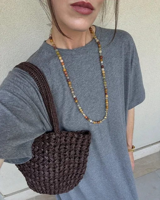 Рынок радует разнообразием форм и оттенков. В тренде — гибкие мягкие мешки, геометричные тоуты, сумки-ведра и мини-версии с короткими ручками, которые можно носить в руке. Цветовая палитра тоже многогранна: от естественных молочных и шоколадных тонов до насыщенных синих, зеленых и вишневых. Для универсальности выбирайте нейтральные цвета — их проще стилизовать. А если хочется выразительности — отдайте предпочтение красному акценту. Летом такие сумки идеально сочетаются с легкими платьями, брюками палаццо и сандалиями на плоском ходу. Осенью — с трикотажем, плащами, кожаными куртками и джинсами. Не бойтесь миксовать фактуры: плетеная кожа отлично смотрится с хлопком, шелком, льном и денимом. Одним словом — настоящая модная инвестиция.