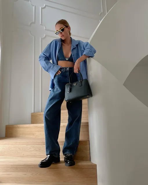 С широкими джинсами есть безотказно работающее правило: чем объемнее джинсы — тем массивнее должна быть обувь. Ему идеально отвечают лоферы на толстой подошве, которые уже стали современной классикой. С джинсами у них сложится идеальный тандем: строгая обувь как нельзя лучше смотрится с расслабленным денимом.