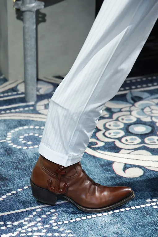 Если говорить о цвете, мы рекомендуем присмотреться к коричневой палитре — любые тона, начиная от темного шоколадного и кофейного и заканчивая стильной охрой и даже яркой древесиной, будут уместны. Это же правило касается и акцентного мыса. Классические сапоги-казаки обладают слегка округлым треугольным мысом, однако это не значит, что вам следует ограничиваться только им. Экстра-острые, квадратные, круглые и с акцентными металлическими набойками — нос у ковбойской обуви может быть самым разным. Наконец, длина голенища. Мы привыкли, что такие сапоги оканчиваются у линии колен, однако если ваш фаворит — укороченные полусапоги, едва закрывающие лодыжку, то нет причин отказываться от этой пары. Тем более, они даже практичнее своих более высоких альтернатив.