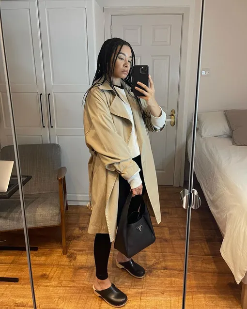 Карантин в России уже закончился — а вот треники, худи и легинсы в качестве повседневной униформы с нами остались. Такое модное guilty pleasure объясняется просто: это очень удобно. К весне все эти спортивные вещи стильные девушки все чаще стали носить вместе с более классическими: пальто, тренчами и жакетами. Сочетание спортивного костюма с пальто уже и само по себе стало своеобразной классикой — но с приходом первого солнца оно сменилось на комбо тренча с черными легинсами, которое ни в чем ему не уступает.