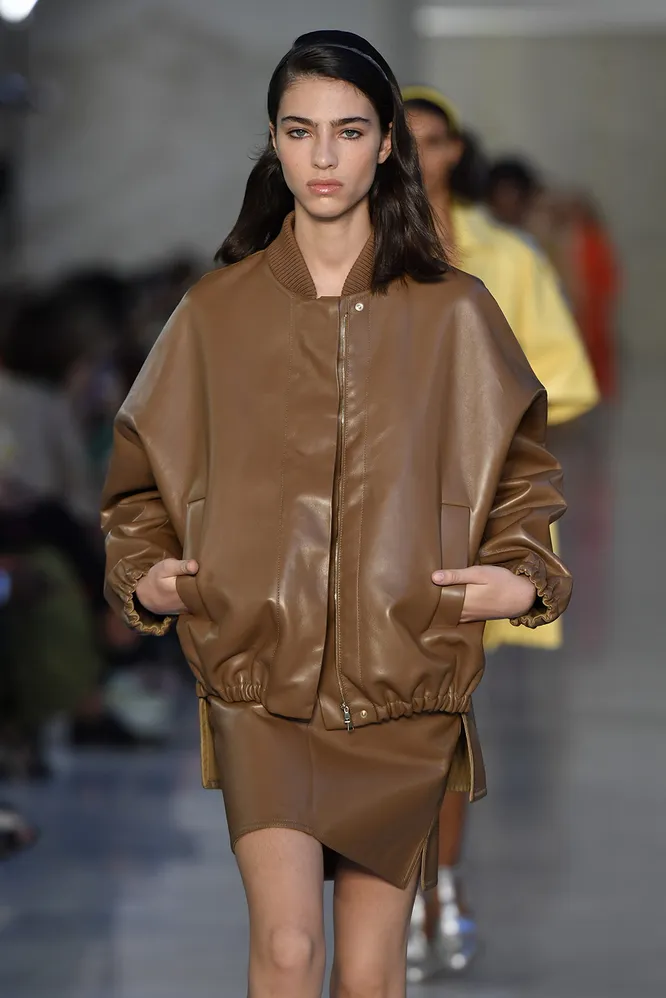 Бомберы не обязательно носить только с джинсами — они отлично сочетаются с брюками, платьями и юбками (как в новом лукбуке The Row, например). Если среди винтажа вы скорее найдете бомберы «натуральных» цветов — черного, коричневого и бежевого — то в новых коллекциях встречаются и яркие модели. Выбирайте кожаные бомберы в самых актуальных оттенках сезона — желтом, оранжевом, зеленом и, конечно, Very Peri — цвете года по версии института Pantone. 8 лучших моделей кожаных бомберов ищите в нашей подборке.
