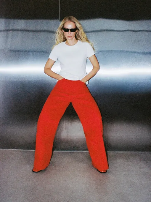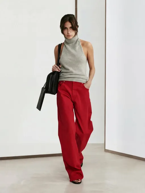 Красные джинсы — тот самый выбор, который уже сейчас формирует визуальный код сезона. Яркие, выразительные, с характером. Они органично вписываются в весенние и летние образы, легко адаптируются под разные сценарии: от повседневных выходов до более нарядных луков. И да, в этом есть ощущение разумной инвестиции: красный по-прежнему удерживает позиции в списке самых актуальных цветов года. Интерес к нему мы можем подтвердить аналитикой: по данным платформы Tagwalk, рост тренда на алую гамму увеличился на 81% в сезоне весна-лето 2026. Причем дизайнеры не ограничивались деталями: красный активно появлялся и в тотал-луках. Если этот тон пока не стал частью вашего гардероба, начните с джинсов. Это один из самых комфортных способов ввести его в повседневные комбинации. При всей своей выразительности он остается довольно гибким: он легко сочетается с нейтральной палитрой и не требует сложных стилистических решений.