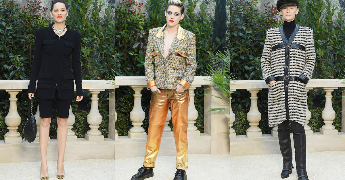 Кристен Стюарт, Тильда Суинтон и Марион Котийяр на показе Chanel