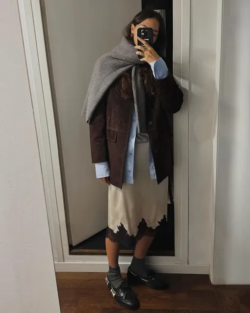 Подробнее о том, как носить балетки холодным летом — здесь.