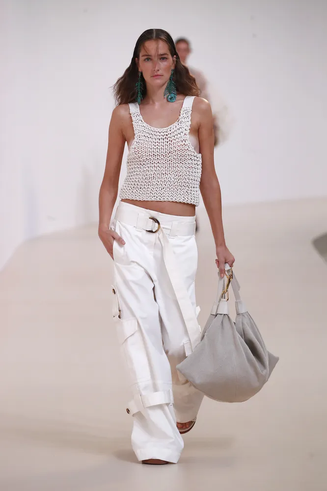 Топов-кроше в этом сезоне на подиумах оказалось бессчетное количество: от простых прямых вариаций на толстых и тонких бретельках, до удлиненных моделей, которые доходят до середины бедра, кропов с ажурными цветочными узорами, и даже боди. Еще одна запоминающаяся идея, которой могут похвастаться дизайнеры — абстрактные и геометрические паттерны, которые превращаются в рисунок благодаря очередности линий вязки. При таком разнообразии топов, палитра, которая к ним применяется, совершенно не выходит за рамки обыденности: самым популярным цветом все еще остается песочный. К нему также присоединяются классические графитовые, темно-коричневые, молочные, черные и меланжевые оттенки.