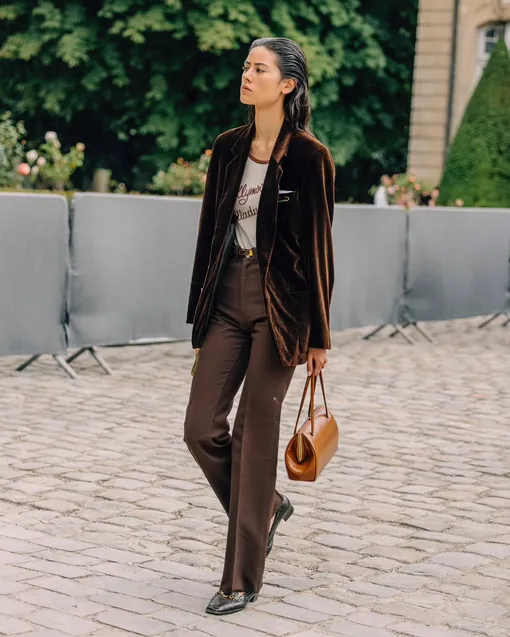 В стилизации все предельно понятно. Джинсы прямого кроя — самый простой вариант. Брюки добавляют строгости, а юбка миди смягчает образ и делает его более женственным. Если хочется контраста, подойдет любое летящее платье: за счет разницы фактур образ будет выглядеть острее. Также присмотритесь к актуальной джинсовой юбке на пуговицах. В итоге лоферы на каблуке закрывают сразу несколько задач. Они поддерживают общий ритм гардероба, работают в разную погоду и делают образ чуть сложнее — без лишних усилий. Именно поэтому к ним так быстро привыкаешь.