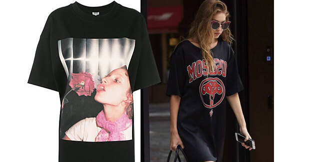 Всю зиму мы не вылезали из объемных свитеров: носили их с узкими джинсами и с высокими ботфортами. Теперь пришло время найти не менее удобную альтернативу на теплое время года. Берем пример с Беллы Хадид и Кендалл Дженнер и обращаем внимание на платье-футболку. Будет ли оно однотонным или с принтом — решать вам, но помните, что самые модные в этом сезоне сувенирные майки — с названием городов. Носите их с ботфортами на шнуровке или с массивными кроссовками и объемной джинсовкой.