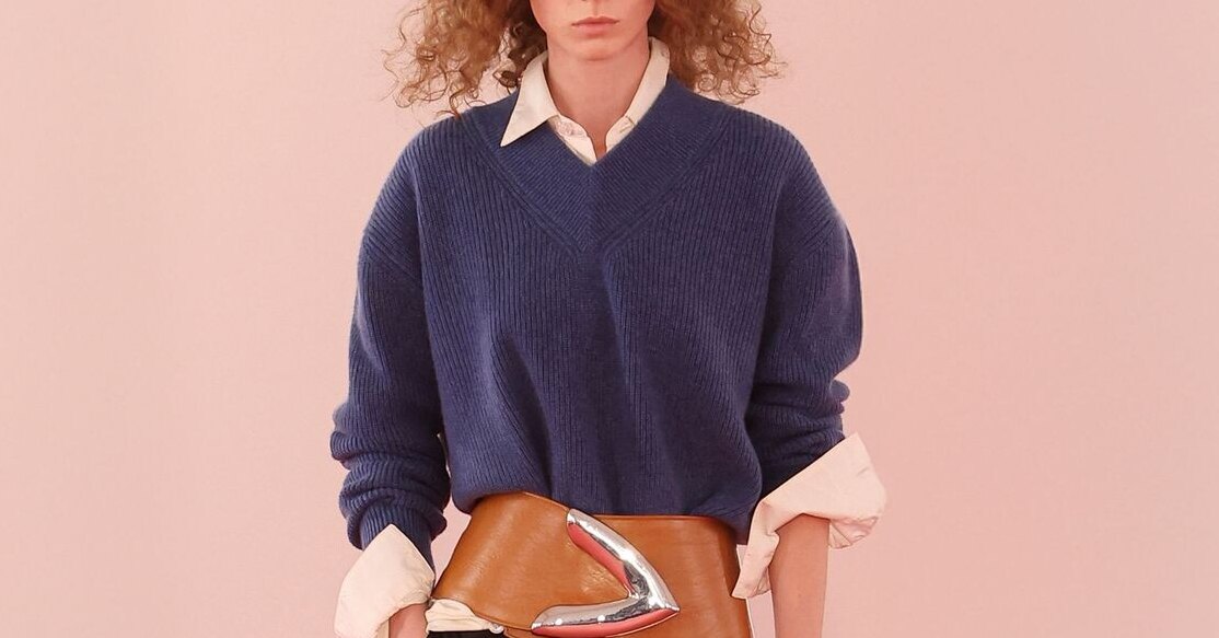 Прежде чем уходить в сложные стилистические конструкции, стоит освоить базу. В роли такого «фундамента» мы предлагаем всего четыре вещи, которые работают как настоящий модный конструктор: свитер с V-образным вырезом, рубашка, брюки и ремень. Комбинация проверенная, универсальная и при этом вовсе не скучная. Именно она позволяет играть с пропорциями, цветом и настроением. Начнем с брюк. Здесь важен не только фасон, но и то, как он взаимодействует с верхом. Прямые модели — самый классический вариант, который поддерживает любую многослойность. Брюки-палаццо создают эффект движения и баланса, особенно если свитер частично заправлен. Клеш и узкие варианты также сработают, особенно если хочется визуально вытянуть силуэт. Цвет выбирайте в зависимости от задачи: черный, серый, темно-синий, шоколадный или насыщенный бордовый. Рубашка отвечает за структуру. Белая — беспроигрышный фон, который подсвечивает слои. Голубая смотрится мягче и добавляет свежести. А полоска работает как тонкий визуальный прием. И не бойтесь удлиненных моделей: подол, выглядывающий из-под трикотажа, делает аутфит сложнее. Свитер с V-образным вырезом — ключевая деталь. Он открывает пространство для стилистической игры: показывает воротник рубашки, линию плеч, а иногда ремень.