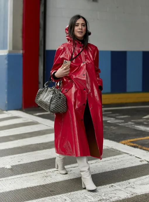 В сезон дождей не обойтись без модного непромокаемого плаща. Героини стритстайла предпочитают полуспортивные плащи на резинках, как у Levi's, напоминающие о детстве. Для более женственных образов выбирайте классические модели, как у Moncler, или виниловые — хит недавно прошедших недель моды.
