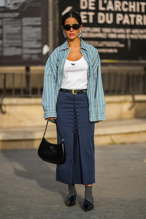 Но не будем томить вас в ожидании. Все очень просто. мы предлагаем всего лишь два шага. Первый — не застегивать рубашку: нужно оставить ее полностью распахнутой. И второй заправить ее. В брюки, юбку или шорты — это не так уж важно. Да-да, не удивляйтесь: при этом мы не застегиваем сорочку. этот простой, но эффектный прием мы подсмотрели у модных инфлюенсеров. Такой вариант стилизации добавляет образу нужную долю небрежности. А еще позволяет воспользоваться всеми визуальными преимуществами многослойности жарким летом, когда этот прием не совсем востребован. Для этого просто наденьте под распахнутую рубашку белую футболку, майку-алкоголичку или спортивный топ. «Низ» при этом может быть любым — от нарядной шелковой юбки до шортов из денима или самых простых джинсов. Выбирайте то, в чем вы чувствуете себя максимально уверенно. и не забывайте о комфорте: все-таки летний зной — не то время, чтобы отказывать себе в удобстве. А варианты стилизации и цветовых сочетаний можно подсмотреть в нашей «шпаргалке»: мы собрали варианты готовых образов, которые можно повторить, если вы сомневаетесь, что надеть сегодня.