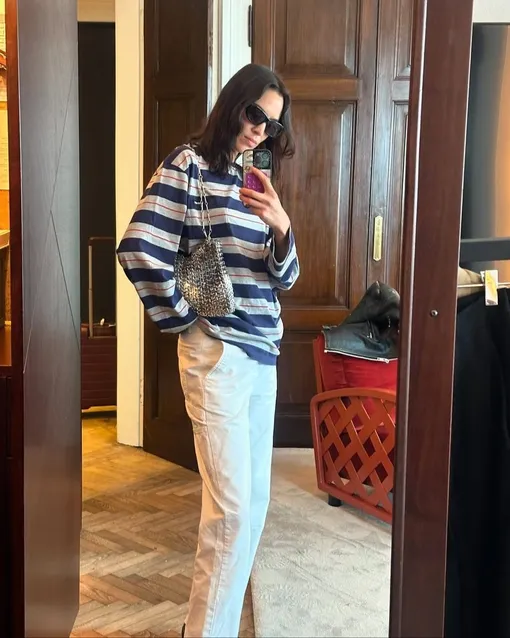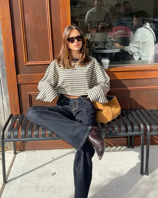 Лонгслив давно прочно обосновался в базовом гардеробе по нескольким причинам. Во-первых, — это идеальный «первый слой», который можно надеть под любой образ — начиная от прямого пиджака с массивными плечами в духе powerdressing и заканчивая приталенным укороченным жакетом в женственном стиле. Во-вторых, такая модель прекрасно себя чувствует в роли единоличного верха для тех, кто не хочет оголять руки и носить футболки и любые другие топы. Единственный вопрос — какие лонгсливы носить, если базовые белые давно надоели? Ответ нашелся на страницах инфлюенсеров в социальных сетях. И это — вариации в полоску. Да-да, вы не ослышались — тельняшки с самыми разными полосками (классическими сине-белыми и более необычными — например, красными) стали самой желанной моделью сезона. Стилизовать их так же просто, как и базовые модели, однако они, в отличие от первых, определенно добавляют характер образу и превращают его из скучной базы в стильный аутфит в духе французского шика.