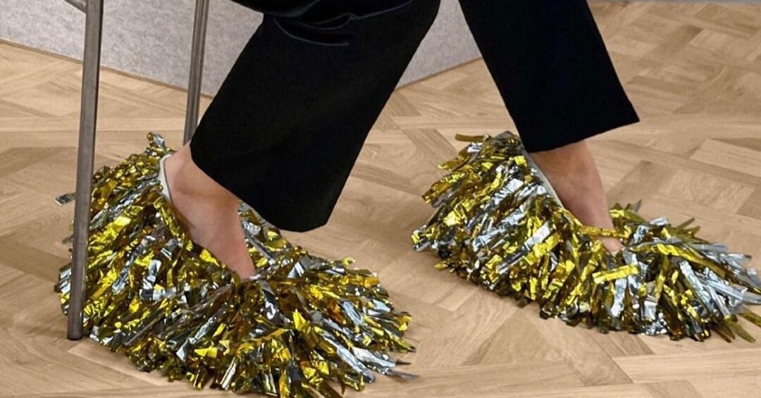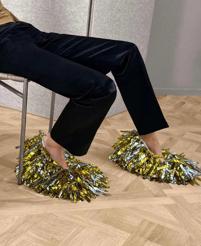 Эта мысль нас посетила, когда мы увидели кадры с новой коллекцией Loewe Pre-Fall 2023 в соцсетях Джонатана Андерсона. На одном из фото модель позировала в туфлях из сияющей новогодней мишуры и совершенно обычных черных брюках. Вдохновившись этим снимком, мы решили, что в предпраздничные и праздничные дни так и будем одеваться — комфортно, но вот с такими яркими деталями. Так что доставайте с дальней полки свои любимые туфли Золушки, сияющие всеми стразами мира, и надевайте их с простыми рваными джинсами и серым джемпером: так никто не упрекнет вас ни в недостаточной нарядности, ни в том, что вы одеты немного too much. И вперед — праздновать!
