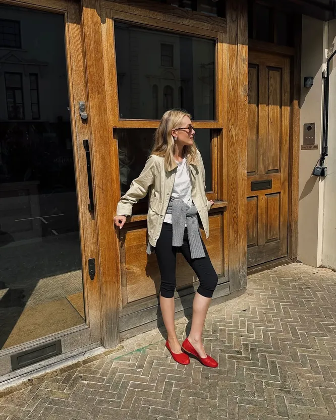 Тренч остается вне времени и вне сезонов — и в такую погоду просто незаменим. Выбирайте модель из легкой плащевой ткани, желательно с водоотталкивающей пропиткой и акцентными деталями: пояс, объемный воротник или интересная фурнитура. Сочетайте его с брюками-капри — тем самым забытым, но невероятно актуальным сегодня фасоном. И не забывайте — такая длина очень коварна и может визуально «утяжелять» ноги и «резать» рост. А чтобы точно не промахнуться, остановитесь на парах с острым мысом.