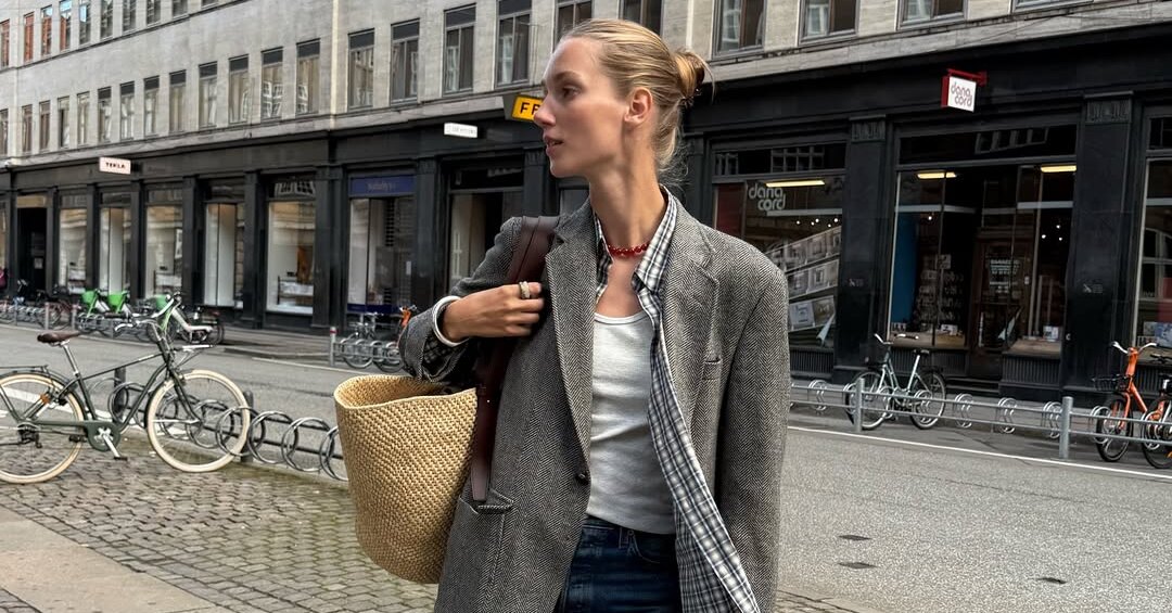 Существует стереотип: лето и прием многослойности несовместимы. Но на деле это не совсем там: этот трюк можно и нужно использовать. Начните с базовой майки и зауженной пары джинсов, накиньте сверху рубашку, а затем жакет. Такой аутфит работает на контрасте: расслабленная основа и собранный «верх». Добавьте соломенную сумку — она сбалансирует серьезность жакета и напомнит: за окном все-таки август. Финальный штрих — трендовые крупные бусы.