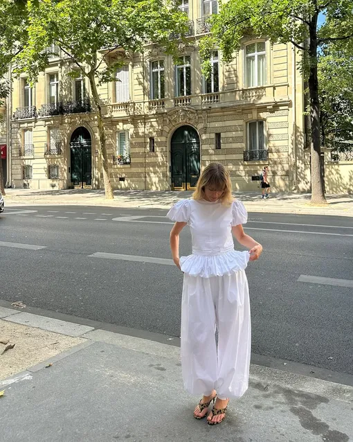 Шаровары — неожиданный хит лета. Легкие, воздушные, удобные — они идеально подходят как для отпуска, так и для офиса. Стилизация зависит от настроения: для кэжуал-образа — кроп-топ, соломенная сумка и сандалии; для более нарядного — топ с рукавами-фонариками и вьетнамки на каблуке.