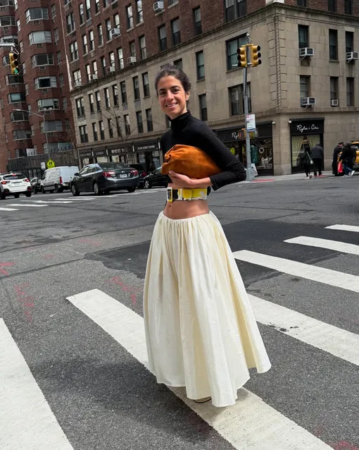 Готовы к лету? Носите кроп-топы? Хотите примерить? Тогда носите такой «верх» с самой актуальной юбкой сезона — с заниженной линией талии. А к такому ансамблю Леандра обязательно добавит ремень. Да, прямо на голове тело.