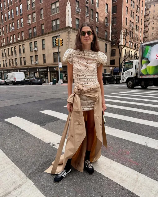 Самый неожиданный, но при этом понятный ход. Легкое платье, кроссовки, тренч. Стало жарко — не убирайте его, а завяжите на талии. Вы одновременно подчеркиваете фигуру и добавляете ансамблю фишку. В ее подходе много случайных трюков: все решает момент, время, место, настроение. Идите навстречу себя, чувствуйте свои желания, и тогда даже ремень перестанет быть простой утилитарной деталью. И, пожалуй, этот урок стоит взять на вооружение в первую очередь.