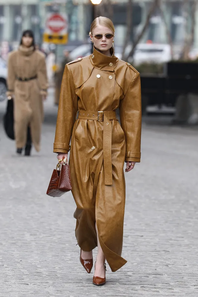 Одеваться выразительно в холодную погоду всегда непросто, особенно после затяжной зимы, когда хочется обновления и визуальной легкости. Кожаное пальто становится тем самым компромиссом между эстетикой и функциональностью. Оно легко вписывается в общий курс моды на индивидуальность и добавляет образу характер без излишней театральности. При этом многие по-прежнему относятся к нему с осторожностью. Одних смущает ассоциация с дерзкими образами в духе Тринити (героини культовой «Матрицы»), других останавливают вопросы этики или опасения, что альтернативные виды кожи выглядят слишком искусственно. Современные коллекции уверенно разрушают эти сомнения. Дизайнеры предлагают кожаные пальто в самых разных интерпретациях: от прямых и лаконичных до приталенных моделей с выразительной линией плеча в духе power dressing. Не теряют актуальности и более классические варианты с отложным воротником. Цветовая палитра давно вышла за пределы черного. В фокусе серый, хаки, тиловый, коричневый и темно-синий — оттенки, которые выглядят благородно и легко стилизуются. Эксперименты касаются и самой фактуры материала. Помимо привычной матовой кожи внимание привлекают лакированные экземпляры и варианты с анималистичным тиснением. Технологии также заметно продвинулись вперед: искусственные аналоги сегодня выглядят убедительно и отличаются высоким качеством, что расширяет выбор и делает тренд более доступным.