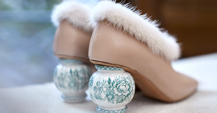 Объект желания: башмачки Герды с меховой оторочкой и керамическими каблуками-вазами
