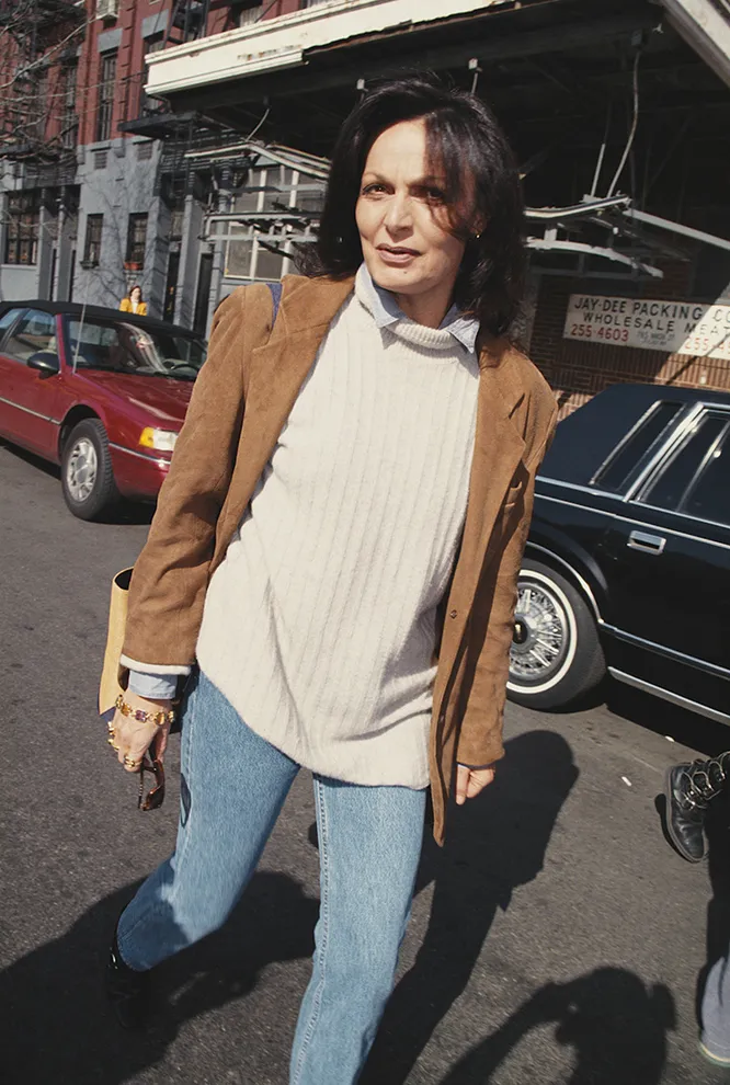 Нью-Йорк, январь 1995-го. Диана фон Фюрстенберг гуляет солнечным днем по Манхэттену: папарацци подловили ее в районе Вест-Виллидж в небрежном, но таком стильном образе. Светлые узкие джинсы, кремовый объемный свитер, из-под которого слегка выглядывает высокий воротник рубашки. Замшевый жакет, вместительная сумка на плече — кажется, мы знаем, где современные модницы черпают вдохновение, составляя базовые повседневные образы. Не зная даты, когда был сделан снимок дизайнера, можно подумать, что этот наряд был составлен в наши дни. Чем не повод повторить?
