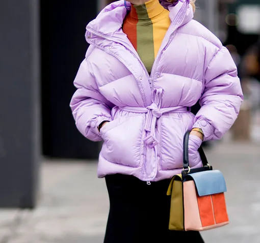 Новый холодный сезон по старой памяти опять встречает массивными яркими однотонными моделями, которые носят, слегка расстегнув молнию или перетянув талию ремнем. Нежно-розовый, похожий на пузырь клубничной жвачки, блестящий серебристый, как космический скафандр, или практичный немаркий оливковый — решать вам.
