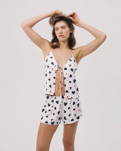 Правильно подобранная пижама работает не хуже эффектного комплекта белья — она задает романтичное настроение и добавляет уверенности. Радовать себя стоит и без повода, но 14 февраля будто создано для маленьких эстетических жестов в сторону повышения собственной самооценки. Один из самых приятных сценариев — остаться дома, накрыть стол на кухне или в гостиной, зажечь свечи и позволить вечеру идти своим чередом. В такой обстановке продуманный домашний образ играет не меньшую роль, чем подарки, праздничный ужин и плейлист. И именно пижама становится главным героем вечера.