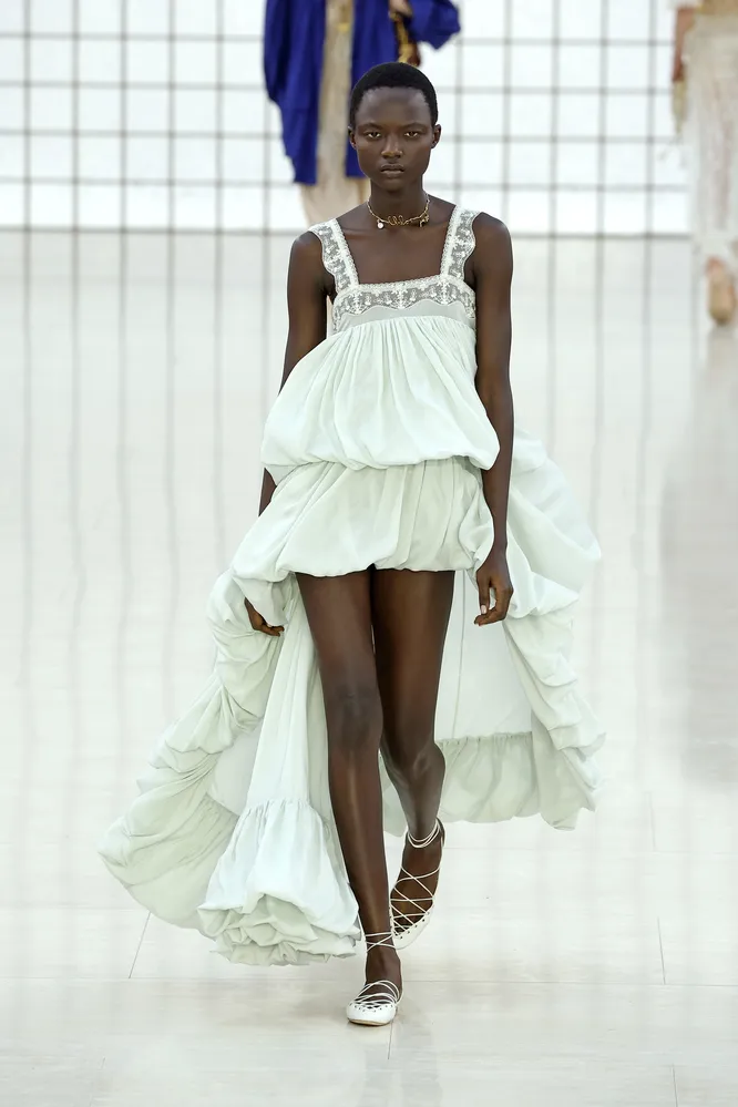 Объемные архитектурные формы, похожие на дутое стекло, продолжают править бал. После того, как прошлым летом юбка-баллон сместила с модного пьедестала даже трендовую мини с гофре в теннисном стиле, а джинсы-фонарики, как у Alaïa и Acne Studios, стали самой популярной моделью из денима, настал черед платьев-баллонов или bubble dress. Их воздушный фасон и невесомая ткань делают эту вещь главным фаворитом сезона. Чтобы подсмотреть идеи по стилизации и самые виральные вариации года, отправляемся к главным мировым брендам — например, Chloé, Ferragamo и Stella McCartney. Тот факт, что все главные дома-трендсеттеры добавили платье в этом крое к себе в весенне-летние коллекции уже говорит о многом.