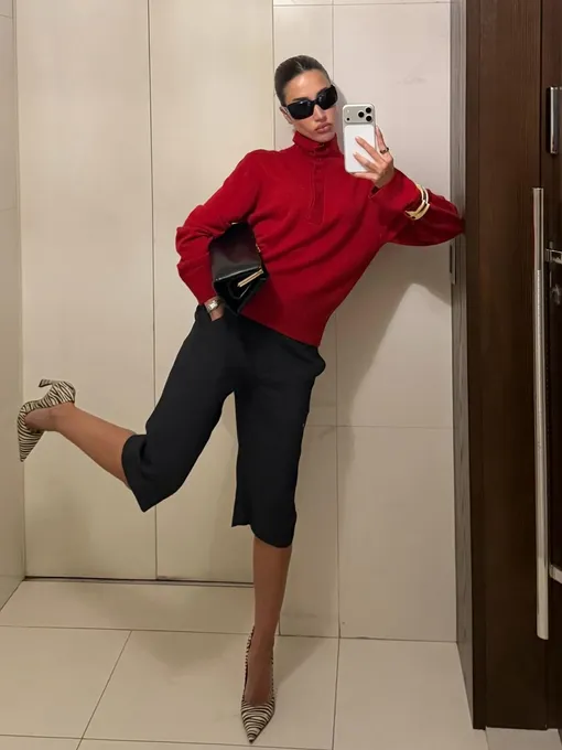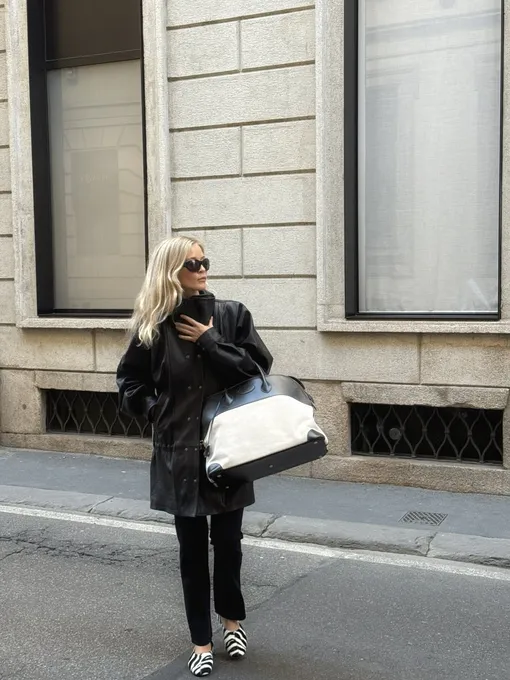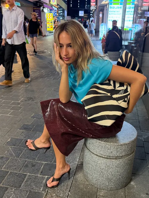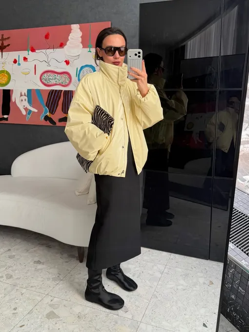 Сегодня зебровый рисунок снова на пике — и уже уверенно вытесняет леопард из категории универсального акцента. Причина кроется в его логике: черно-белая палитра выглядит контрастно, но не перегружает аутфит. Такой принт легко встроить даже в минималистичный лук, не нарушая его структуру. Как его стилизовать? Пока на улице прохладно, примерьте юбку в длине миди, сапоги-носки и бомбер. А клатч станет классной финальной деталью ансамбля. Любите черные тотал-луки? Обувь прекрасно разбавит этот вневременной монохром. И еще один бонус — сочетания. Зебра спокойно взаимодействует с насыщенными оттенками: красным, желтым или бирюзовым. Она не спорит с цветом, а подчеркивает его, добавляя наряду глубину. В итоге вы получаете тот самый акцент, который работает за вас и при этом оставляет пространство для вашей индивидуальности.