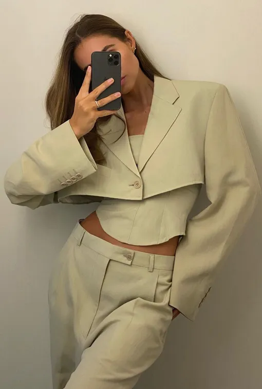 Показать талию: в этом сезоне носите укороченный пиджак с широкими плечами