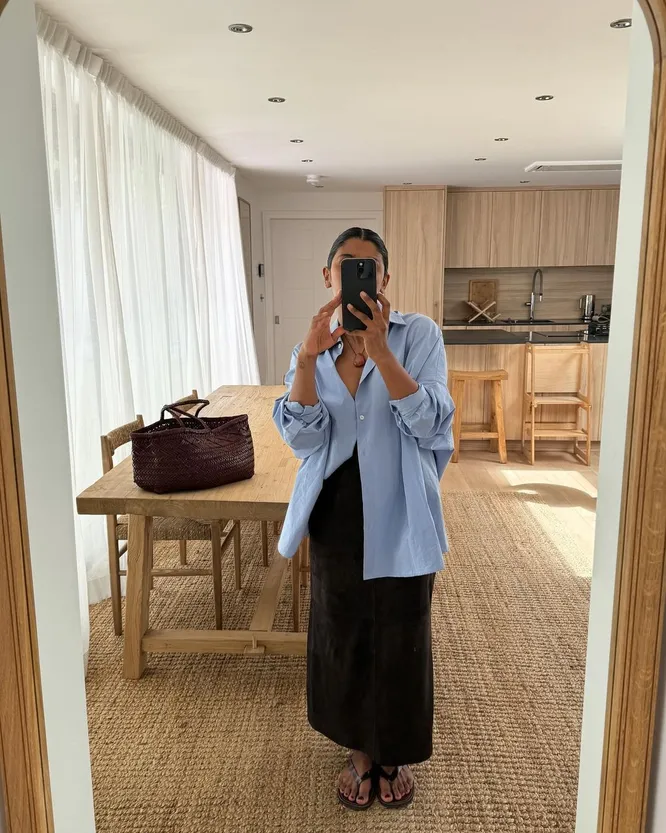 Юбка — один из главных символов лета. Но вопрос «с чем ее носить, чтобы не выглядеть скучно или слишком просто?» звучит регулярно. Наш ответ: с рубашкой. Именно она позволяет составить образ, который будет одновременно базовым и небанальным. Особенно если правильно подойти к выбору всех составляющих. В арсенале каждой найдется хотя бы одна юбка — будь то классическая миди, хлопковая трапеция, сатиновая струящаяся, на запах или даже джинсовая. Все они в 2025 году актуальны как никогда. Равно как и разнообразие рубашек, с которыми эти юбки можно стилизовать. Приталенного кроя, классические белые, голубые, версии изо льна или шелка — каждая из них придает ансамблю разное настроение. Льняная рубашка делает образ расслабленным, свободным. Хлопковая — собирает в единое целое и отлично подходит для офиса. А шелковая (или даже с рюшами) — добавляет утонченности.