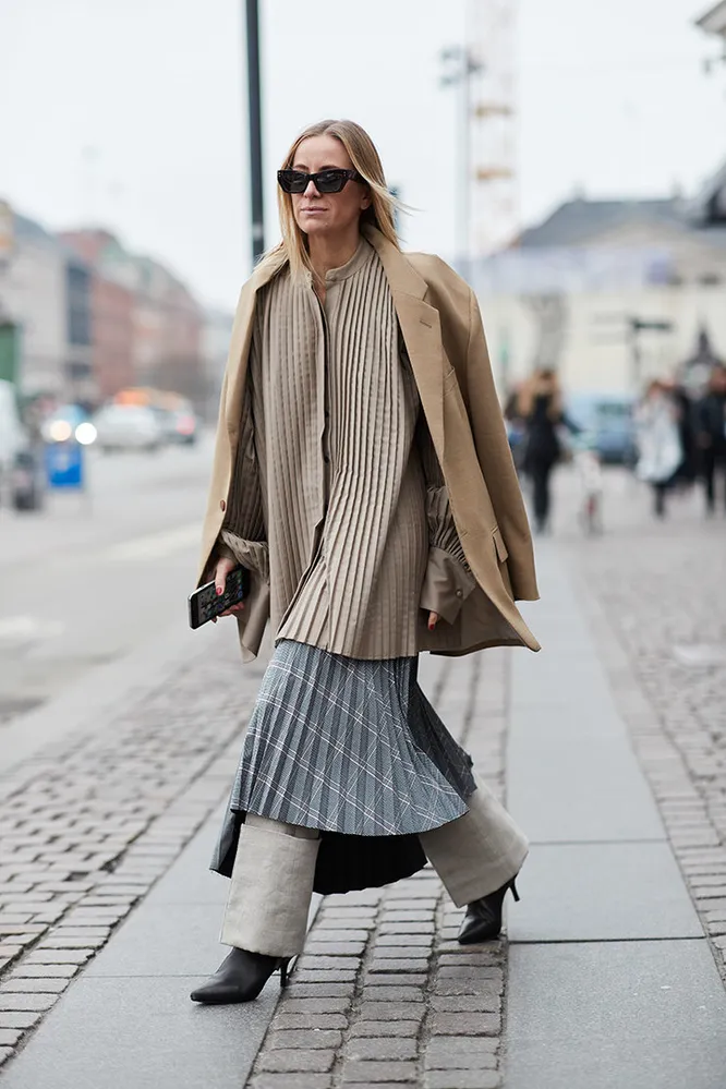 Мы предлагаем взять на заметку любовь икон стритстайла к плиссированным вещам и завести в своем гардеробе хотя бы одну модель в складку. Это может быть металлизированная юбка, каскадные брюки или кокетливый топ — главное, чтобы на нем была заветная «лесенка».