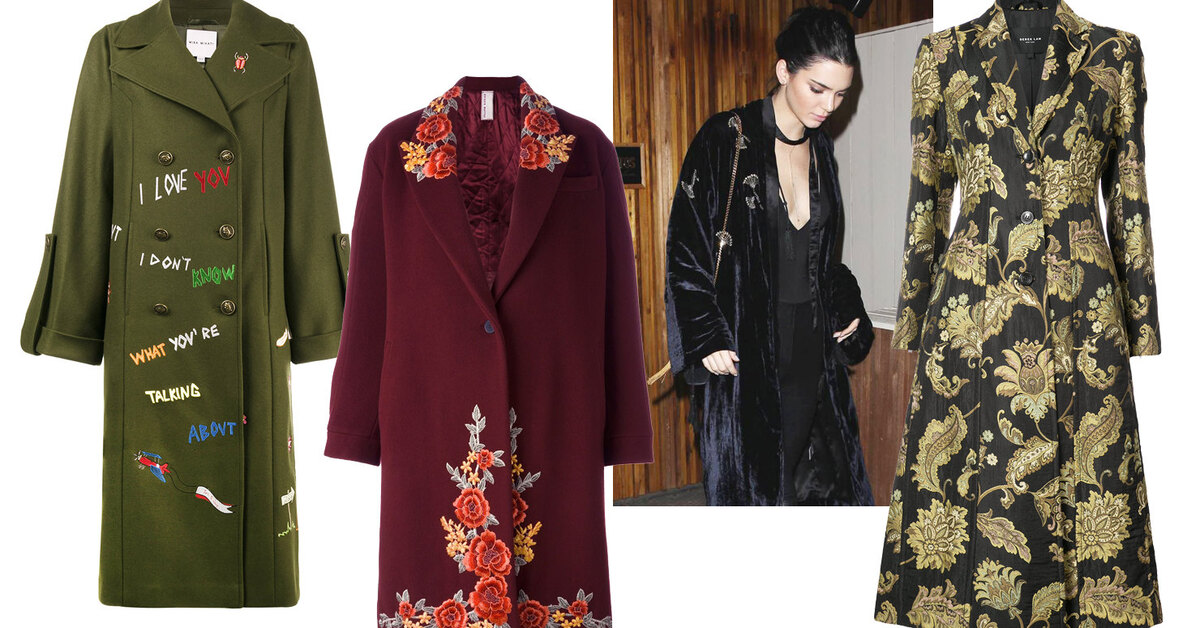 Разноцветные признания в любви и цветочный сад на плечах: 12 пальто с вышивкой