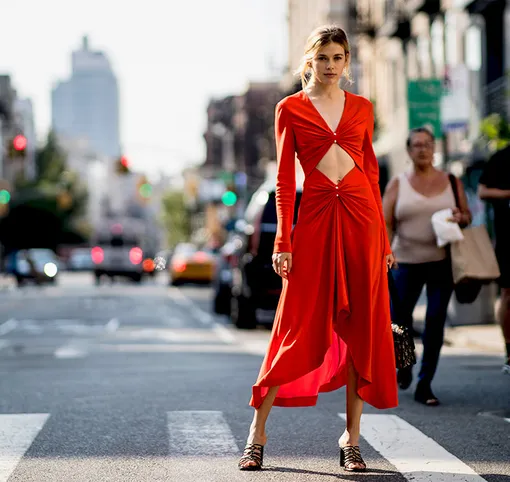 Когда речь идет о макси, это не обязательно бесформенные балахоны в пол. А даже если балахон, то пусть в нем будет изюминка — прозрачные детали или открытая спина. Вэтом сезоне на пике популярности платья с разрезами в области живота или талии, что добавляет им чувственности. Звезды стритсатйла носят такие с мюли на каблуках и босоножками на маленьком каблуке. «Парадные» варианты из тюля отлично подойдут для будней, если их балансировать громоздкими «папиными» сандалиями. И не забывайте про пояс — любое платье маски с ним создаст правильные пропорции.